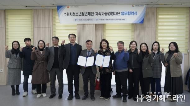 [경기헤드라인=문수철 기자] 수원시청소년청년재단과 지속가능경영재단은 1월 22일 고립‧은둔 청소년‧청년 및 사회적 취약 청소년‧청년 지원을 위한 업무협약(MOU)을 체결했다.
