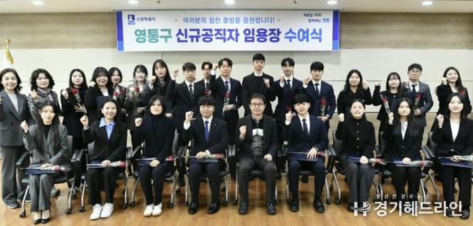 영통구는 신규 공직자들에게 임용장과 함께 꽃을 전달하며 공직 입문을 축하하고, 지역사회 발전을 위해 성실하고 책임감 있게 근무해 줄 것을 당부했다.