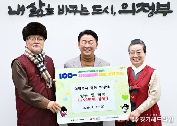 [경기헤드라인=문수철 기자] 의정부시는 2025년 의정부시 명장(식품가공 분야)으로 선정된 박경애 명장이 새해를 맞아 지역사회의 어려운 이웃을 위해 직접 만든 떡 50kg(100만 원 상당)과 성금 50만 원을 기탁하며 ‘100일간 사랑릴레이 배턴 잇기’에 동참했다고 밝혔다.