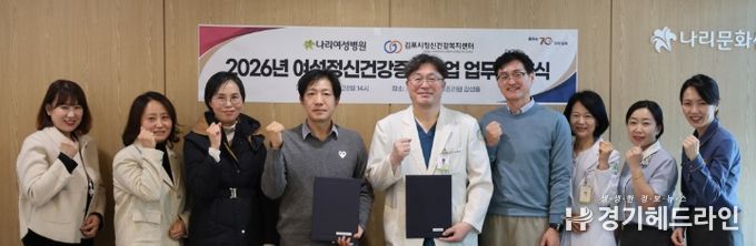 [경기헤드라인=문수철 기자] 김포시정신건강복지센터는 지난 1월 28일 나리여성병원과 여성 정신건강증진사업을 위한 업무협약을 체결했다.