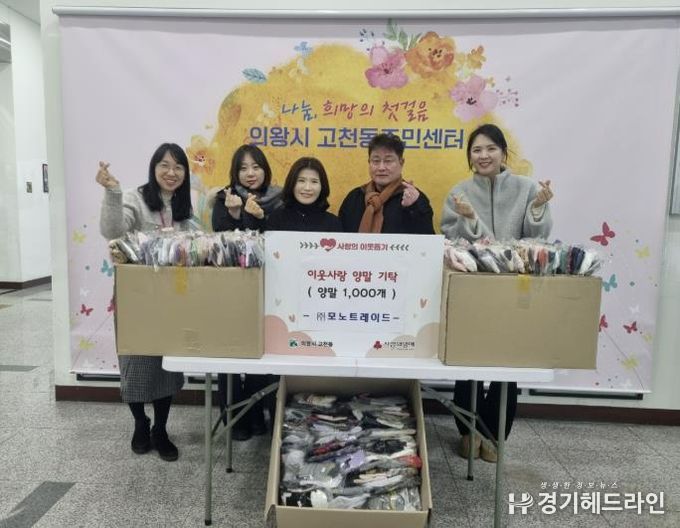 이번에 기탁된 양말은 의왕시 고천동 소재 ㈜모노트레이드에서 전달한 것으로 관내 저소득 가구와 독거노인 등 도움이 필요한 이웃들에게 배부될 예정이다.