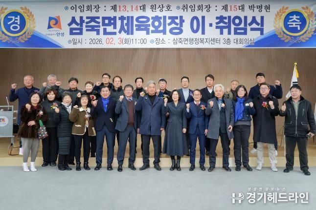 [경기헤드라인=문수철 기자] 안성시 삼죽면은 지난 2월 3일, 삼죽행정복지센터 3층 대회의실에서 열린 삼죽면 체육회장 이·취임식을 성황리에 마쳤다고 밝혔다.