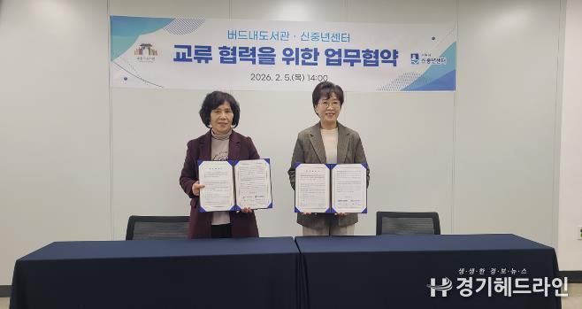 두 기관은 5일 버드내도서관에서 ‘신중년 맞춤형 라이프 솔루션 제공을 위한 업무협약’을 체결하고, 협력을 약속했다.