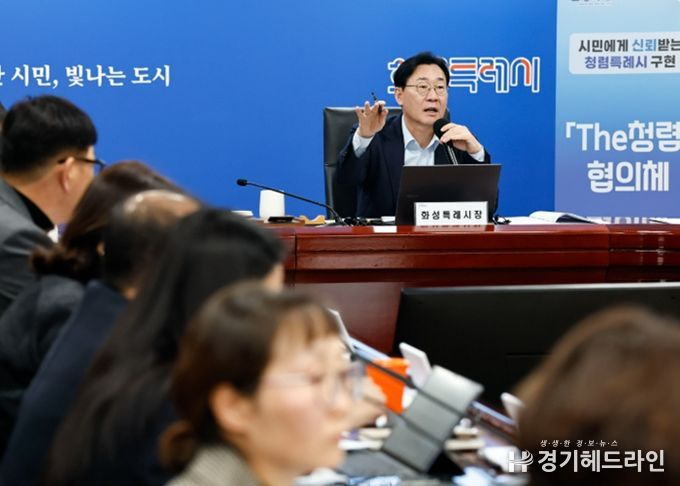 [경기헤드라인=문수철 기자] 화성특례시는 9일 시청 상황실에서 정명근 시장을 단장으로 실국장단 및 구청장 등 4급 이상 고위직 공무원으로 구성된 '더 청렴' 협의체 회의를 개최했다.