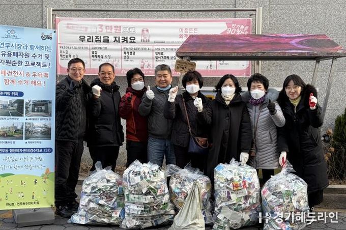 [경기헤드라인=문수철 기자] 수원시 장안구 연무동은 지난 6일, 반사모(반딧불이 연무시장 사랑 소모임)와 함께 연무시장 일원에서 유용생활폐자원을 수거했다.