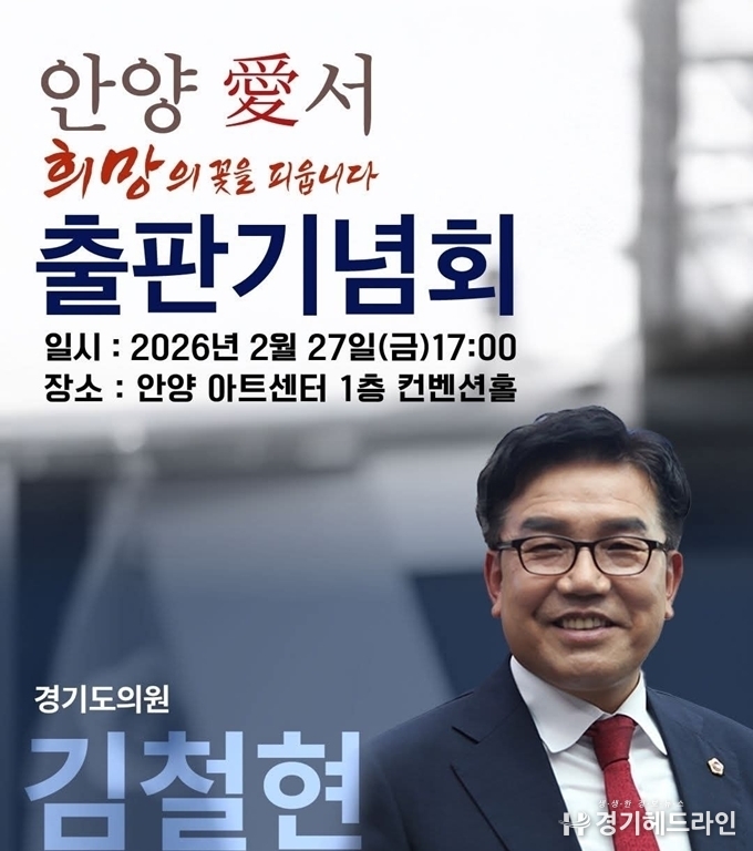 [경기헤드라인=문수철 기자] 김철현 경기도의원이 오는 27일(금) 오후 5시, 안양아트센터 1층 컨벤션홀에서 저서 『안양 愛서 희망의 꽃을 피웁니다』 출판기념회를 개최한다.