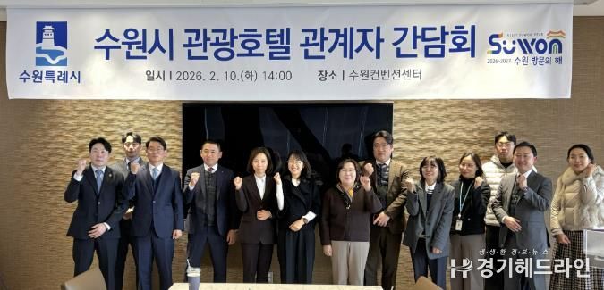 이날 간담회에는 선은임 수원시 문화관광체육국장, 황명희 관광과장 등 수원시 관계자들과 코트야드 메리어트 수원·라마다프라자호텔 수원 등 수원시 8개 관광숙박업체 관계자, 수원컨벤션센터 관계자 등이 참석했다. ‘2026~2027 수원 방문의 해’ 추진 현황, ‘수원 국제회의복합지구’ 지정 현황을 설명한 후 관광숙박업 관계자들과 관광 활성화 방안을 논의했다.