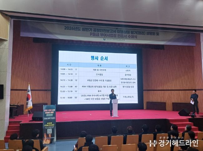 [경기헤드라인=문수철 기자] 중부지방노동청 수도권 중대산업사고 예방센터는 2월 11일 오후 2시부터 안산시 단원구 소재 중소벤처기업연수원 대강당에서 '2026년 상반기 공정안전관리(PSM) 이행상태 평가(점검) 사업 설명회'를 개최했다.
