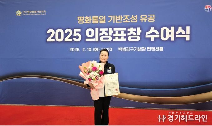 [경기헤드라인=문수철 기자] 정임행 민주평화통일자문회의 강남구협의회 차석(㈜파모소 회장)이 2026년 2월 10일 오후 2시 서울 용산구 백범김구기념관 컨벤션홀에서 개최된 민주평화통일자문회의 2025 의장표창 수여식(서울지역)에서 민주평화통일자문회의 의장 대통령 표창을 수상했다.