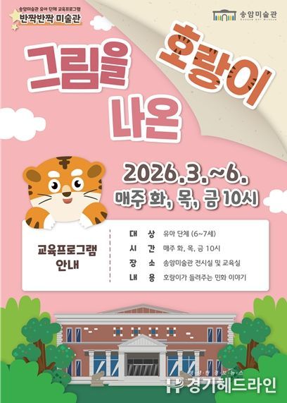 [경기헤드라인=문수철 기자] 인천광역시 송암미술관은 오는 3월부터 6월까지 6~7세 유아 단체를 대상으로 교육 프로그램 '그림을 나온 호랑이'를 운영한다고 밝혔다.