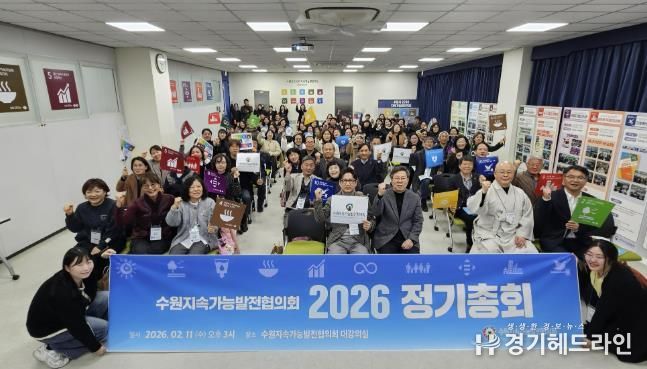[경기헤드라인=문수철 기자] 수원시지속가능발전협의회는 11일 더함파크 대강의실에서 ‘2026년 정기총회’를 열고, 2025년 사업 추진 결과를 공유했다. 또 2026년 사업계획과 예산안을 심의·의결했다.