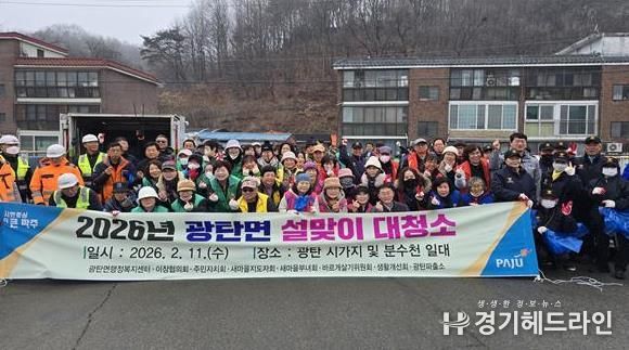 [경기헤드라인=김홍량 기자] 파주시 광탄면은 지난 11일 광탄 시가지와 분수천 일대에서 민관 합동으로 설맞이 대청소를 실시했다.