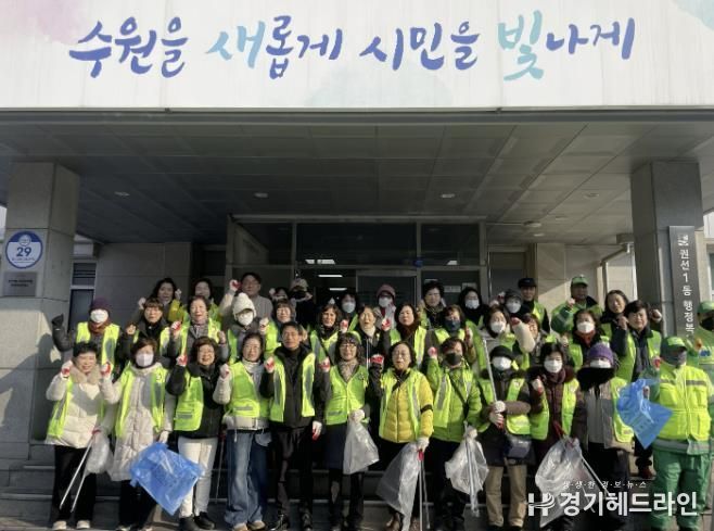 [경기헤드라인=문수철 기자] 권선구 권선1동은 지난 12일, 설 명절을 맞아 통장협의회 등 단체원 50여 명이 참여한 가운데 '행복홀씨' 활동과 연계한 일제 대청소를 실시했다.