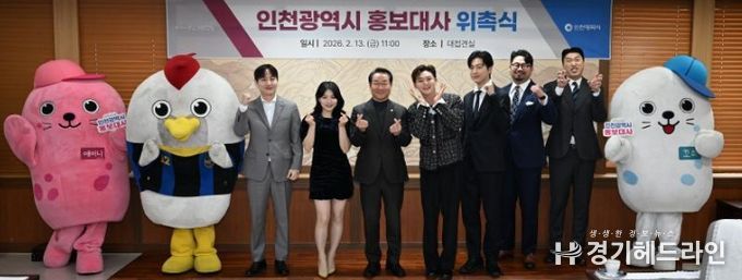 [경기헤드라인=문수철 기자] 인천광역시는 2월 13일 인천 유나이티드 FC 서포터스, 가수 허각·이도진·유수현, 아나운서 정영한, 코미디언 송하빈, 인플루언서 최승열(활동명: hotdor_s), 시민 김주현 등 8팀을 인천시 홍보대사로 위촉했다.