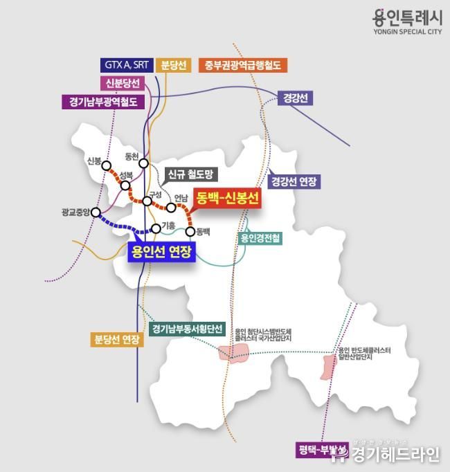 지난해 제2차 경기도 도시철도망 구축계획에 반영된 동백신봉선은 수지구 신봉동에서 성복역(신분당선), 구성역(GTX-A·수인분당선), 동백역(경전철) 등 주요 환승지를 잇는 14.7㎞의 노선이다. 신봉동과 성복동을 거쳐 반도체 소재ㆍ부품ㆍ장비(소부장) 기업과 인공지능(AI) 기업이 입주하고, 호텔ㆍ컨벤션 시설이 들어설 플랫폼시티와도 연결된다.