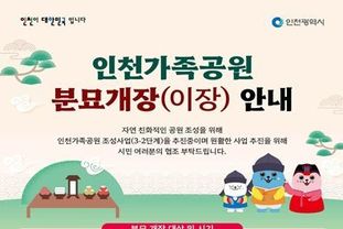 김홍은 시 종합건설본부장은“인천가족공원이 시민 모두의 쉼터로 거듭날 수 있도록 연고자분들의 적극적인 정보 제공과 협조를 부탁드린다”고 말했다.