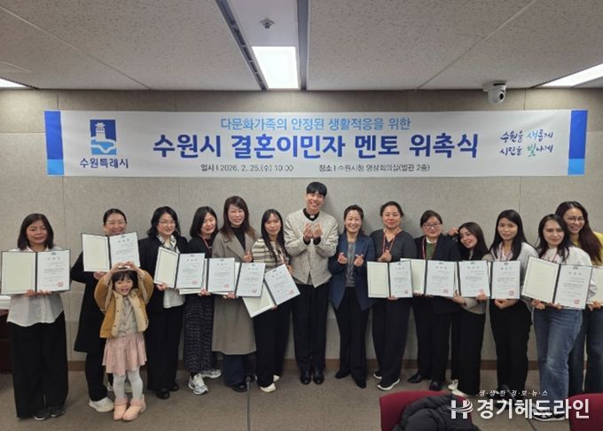 [경기헤드라인=문수철 기자] 수원특례시가 25일 시청 영상회의실에서 ‘2026년 결혼이민자 멘토 위촉식’을 열고 선배 이민자 멘토 15명을 위촉했다.