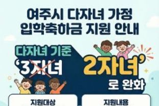 여주시 관계자는 “다자녀 기준 확대를 통해 보다 많은 가정이 실질적인 지원을 받을 수 있게 됐다. 입학을 앞둔 다자녀 가정에서는 기간 내 신청하여 혜택을 받길 바란다.”고 전했다.