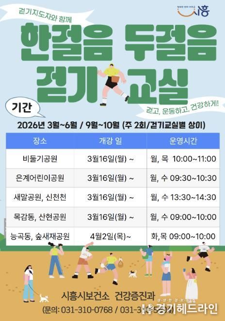 [경기헤드라인=문수철 기자] 시흥시는 시민들의 일상 속 걷기 실천을 장려하고 건강생활 습관 형성을 돕기 위해 ‘한 걸음 두 걸음 걷기교실’을 운영한다.