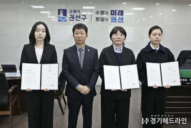 [경기헤드라인=문수철 기자] 수원시 권선구는 지난 5일, 권선구청 2층 집무실에서 신규 공직자 3명이 참석한 가운데 임용장 수여식을 개최했다.