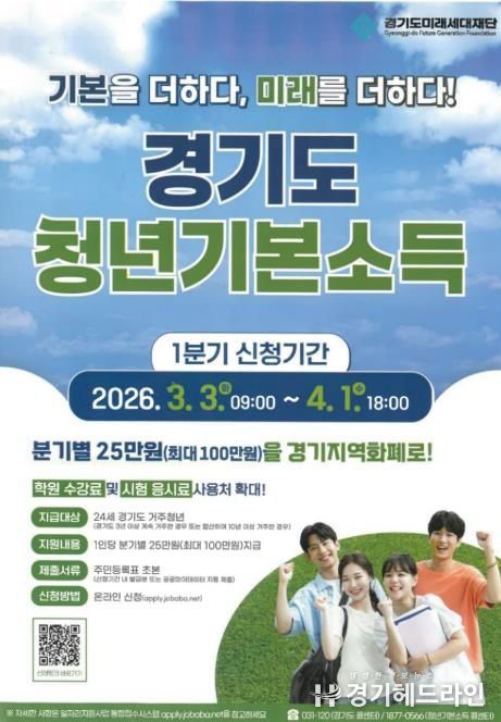 [경기헤드라인=문수철 기자] 오산시는 24세 청년에게 분기별 25만 원을 지급하는 ‘청년기본소득’ 2026년 1분기 신청을 3월 3일부터 4월 1일까지 접수한다고 밝혔다.