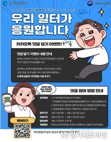 [경기헤드라인=문수철 기자] 인천여성가족재단 인천광역새일센터는 2026년 경력단절예방주간(3월 셋째주)를 맞아 3월 16일부터 22일까지 “우리 일터가 응원합니다.” SNS 댓글 달기를 개최한다.