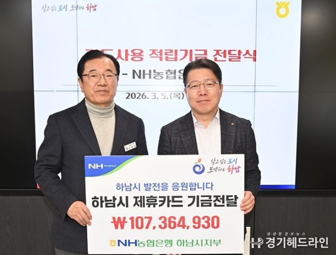 이날 전달된 적립기금은 하남시가 2025년도에 사용한 법인카드와 사회단체 보조금 카드, 공무원 복지카드 등 사용금액의 0.1~1.0% 상당을 포인트로 적립해 조성된 것이다.