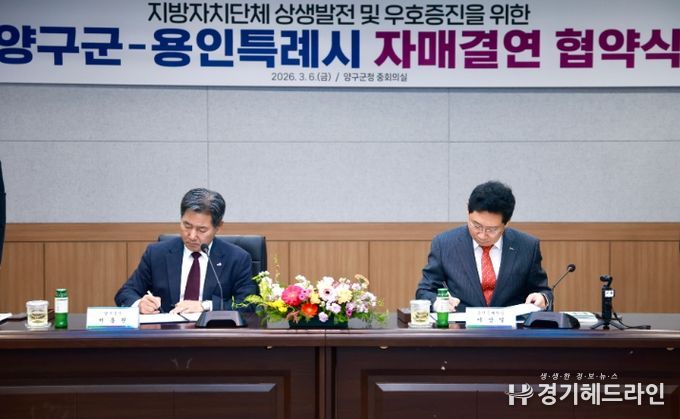 [경기헤드라인=문수철 기자] 용인특례시는 6일 강원특별자치도 양구군과 자매결연을 하고, 두 도시의 교류와 발전을 위해 적극 협력하기로 했다.