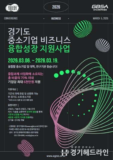 [경기헤드라인=문수철 기자] 경기도와 (재)경기도경제과학진흥원이 도내 중소기업의 혁신 성장과 새로운 비즈니스 모델 발굴을 돕는 ‘2026년 중소기업 비즈니스 융합성장 지원사업’의 참여기업을 모집한다.