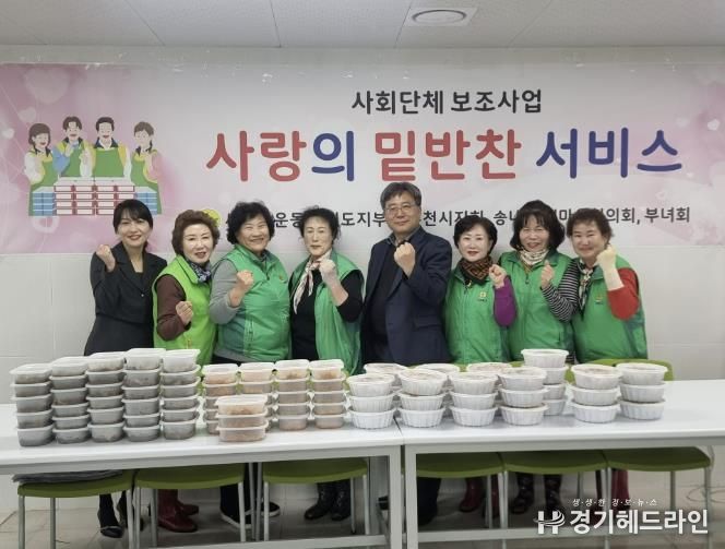 이날 새마을부녀회 회원들은 이른 시간부터 송내동 행정복지센터에서 불고기, 겉절이김치, 콩나물무침, 시금치무침 등 반찬을 직접 조리해 독거 어르신과 취약계층 21가구에 전달했다. 정성껏 마련한 밑반찬은 이웃들에게 따뜻한 식탁과 마음을 전하는 선물이 됐다.