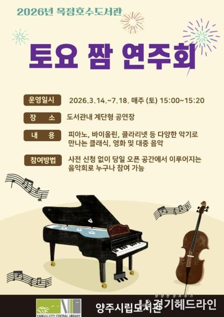 [경기헤드라인=김윤종 기자] 양주시 옥정호수도서관이 오는 3월 14일부터 7월 18일까지 시민들이 일상 속에서 음악을 즐길 수 있도록 ‘토요 짬 연주회’를 진행한다.
