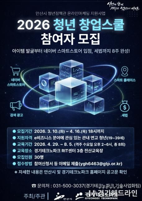 [경기헤드라인=문수철 기자] 안산시는 e비즈니스 분야 청년 창업자의 안정적인 시장 진입과 사업 운영을 지원하기 위해 ‘청년 창업스쿨’ 참여자를 모집한다고 10일 밝혔다.