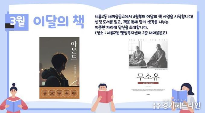 [경기헤드라인=문수철 기자] 권선구 세류2동 행정복지센터는 3월부터 주민 독서문화 활성화를 위한 ‘이달의 책, 함께하세류!’ 사업을 운영하고 있다.