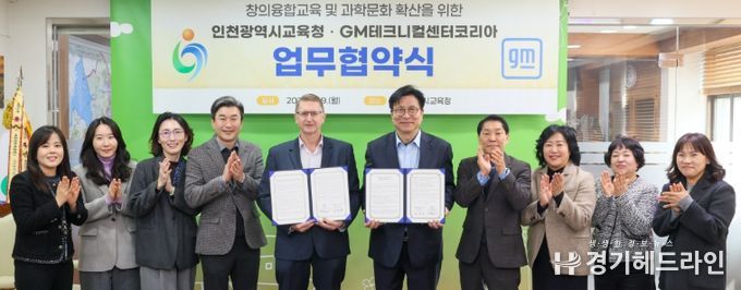 [경기헤드라인=문수철 기자] 인천광역시교육청은 지난 9일 GM테크니컬센터코리아(사장 브라이언 맥머레이)와 ‘창의융합교육 및 과학문화 확산을 위한 업무협약’을 체결했다.