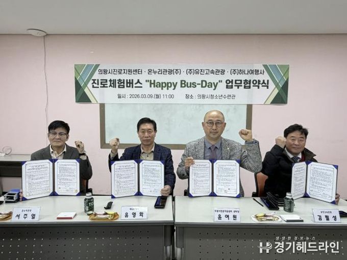 [경기헤드라인=문수철 기자] 의왕시청소년재단 산하 의왕시진로지원센터 ‘꿈터’가 청소년들의 진로 탐색을 지원하기 위해 3월 9일 관내 운수업체와 ‘진로체험버스’ 운영을 위한 업무협약(MOU)을 체결했다.