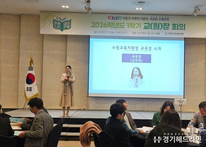 [경기헤드라인=문수철 기자] 경기도수원교육지원청은 3월 10일 화성 푸르미르 1층 그랜드볼룸홀에서 관내 유·초·중·고·특 교(원)장과 수원교육지원청 직원(총 274명 참석)을 대상으로 한 '2026학년도 1학기 교(원)장 회의'를 개최하여 2026학년도 교육과정 운영 방향과 학교 현장의 주요 현안을 공유하고 협력 방안을 모색했다.