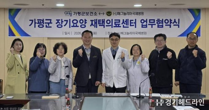 가평군보건소는 10일 HJ매그놀리아국제병원과 ‘장기요양 재택의료센터 운영’을 위한 업무협약(MOU)을 체결했다고 밝혔다. 장기요양 재택의료센터 운영은 의료기관 중심의 방문진료를 통해 재가 장기요양 수급자에게 지속적인 건강관리와 재택의료 서비스를 제공하기 위한 것이다.