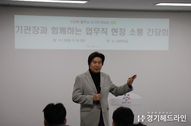 [경기헤드라인=문수철 기자] 광명도시공사가 기관장과 현장 직원이 하나로 뭉치는‘원팀(One-Team) 소통 간담회’를 본격 전개한다.