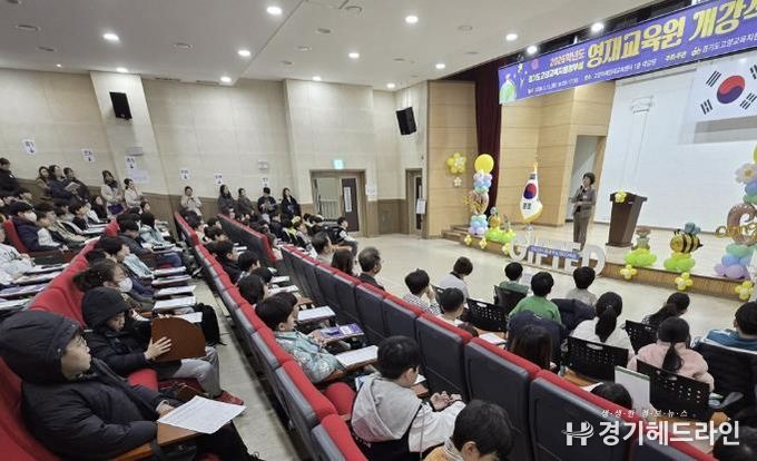 [경기헤드라인=김홍량 기자] 경기도고양교육지원청은 12일 부설 영재교육원 개강식을 개최했다. 고양미래인재교육센터 대강당에서 열린 개강식은 학생·학부모·지도교사 등 300여 명이 참석한 가운데 창의적 미래 인재로 성장할 학생들의 새로운 출발을 축하하는 자리로 진행됐다.