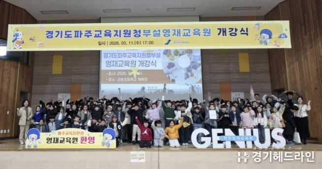 [경기헤드라인=김윤종 기자] 경기도파주교육지원청은 3월 11일 금촌초등학교 체육관에서 2026 경기도파주교육지원청부설영재교육원 개강식을 성황리에 개최했다고 밝혔다. 이번 행사에는 학생, 학부모, 지도교사 등 200여 명이 참석하여 새로운 배움의 시작을 함께 축하했다.