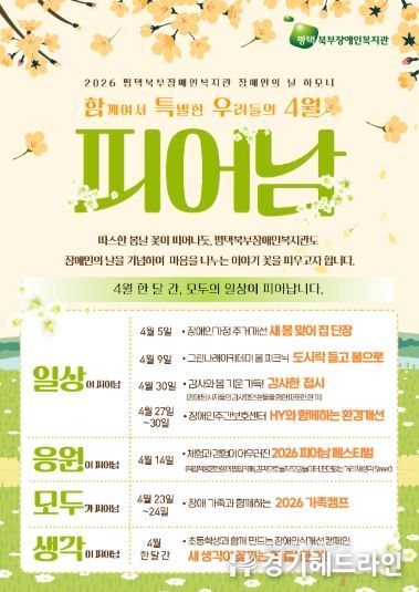 [경기헤드라인=문수철 기자] 평택북부장애인복지관에서는 제 46회 장애인의 날을 맞이하여, 4월 한 달 간2026 장애인의 날 행사 ‘함께여서 특별한 우리들의 4월, '피어남'’을 진행할 예정이다.