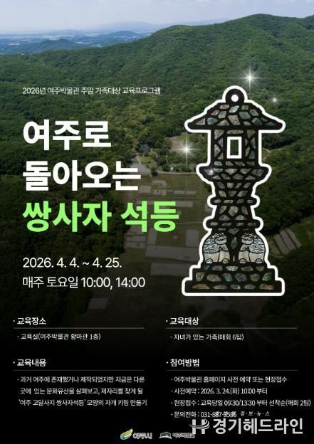 [경기헤드라인=정현수 기자] 여주시 여주박물관은 오는 4월 주말을 맞아 가족이 함께 지역 문화유산의 가치를 배우고 체험할 수 있는 교육프로그램 '여주로 돌아오는 쌍사자 석등'을 운영한다.