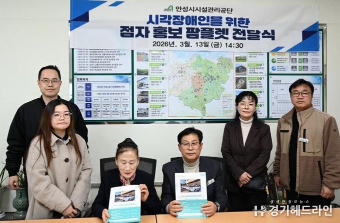 [경기헤드라인=문수철 기자] 안성시시설관리공단은 지난 13일 안성시 시각장애인협회에 시각장애인의 교통정보 접근성 향상을 위한 점자 홍보물(팜플렛)을 전달했다.