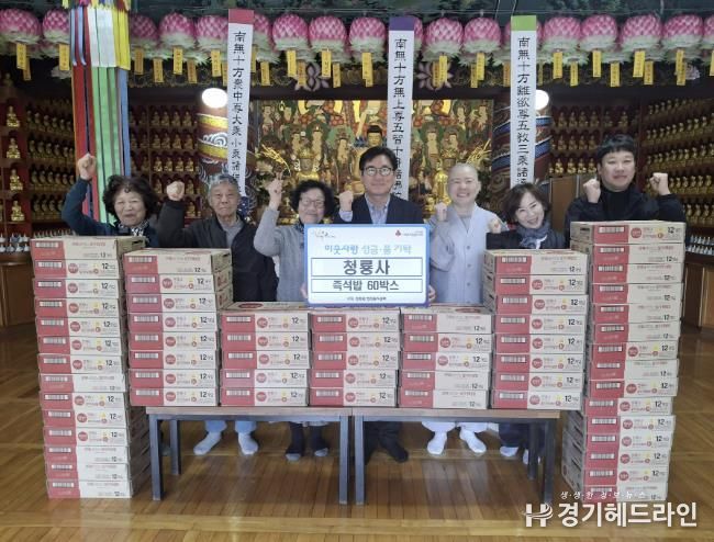 [경기헤드라인=문수철 기자] 가평 청룡사는 최근 지역의 소외된 이웃들에게 도움이 되길 바라는 마음으로 청평면 행정복지센터에 즉석밥 60박스를 기탁했다.