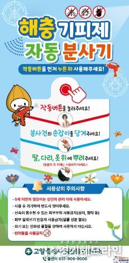 [경기헤드라인=김홍량 기자] 고양특례시 일산동구보건소는 관내 설치된 해충기피제 자동분사기와 포충기, 유문등 등의 3월 조기가동에 문제가 없도록, 방역 관련 장비 총 101개의 상태를 확인하는 사전 전수점검을 완료했다고 18일 밝혔다.
