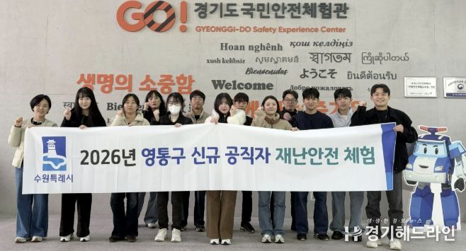 [경기헤드라인=문수철 기자] 수원시 영통구는 지난 18일, 경기도 국민안전체험관에서 신규 공직자들을 대상으로 재난·안전 체험교육을 실시했다. 이번 교육은 신규 공직자들의 재난 대응 역량을 높이고 현장 중심의 안전의식을 강화하기 위해 추진됐다.
