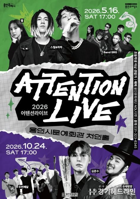 [경기헤드라인=문수철 기자] 용인문화재단은 용인시문예회관 처인홀에서 청년층을 주요 대상으로 한 라이브 공연 브랜드 '2026 어텐션 라이브'를 상·하반기 두 차례에 걸쳐 개최한다.