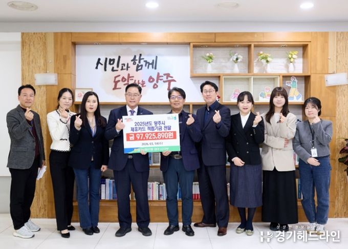 [경기헤드라인=김윤종 기자] 양주시는 3월 18일 오후 NH농협 양주시지부로부터 '2025년 제휴카드 사용을 통해 적립된 기금 97,925천원을 전달받았다고 밝혔다.