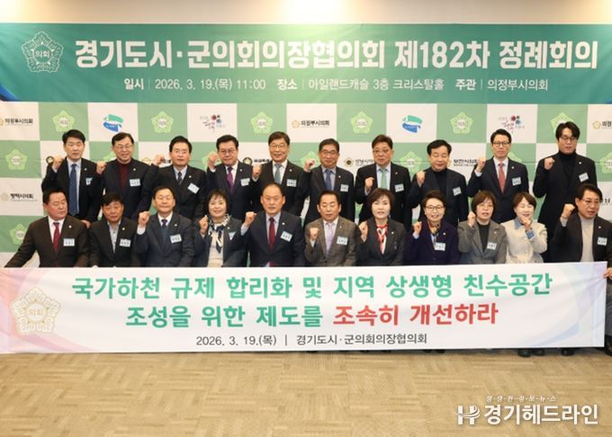 [경기헤드라인=김윤종 기자] 경기도시군의회의장협의회 회장인 동두천시의회 김승호 의장이 제안한 '국가하천 규제 합리화 및 지역 상생형 친수공간 조성을 위한 제도 개선 촉구 건의안'이 19일 의정부 아일랜드캐슬에서 열린 제182차 정례회의에서 만장일치로 채택됐다.