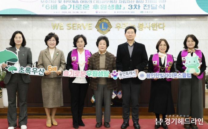 [경기헤드라인=문수철 기자] 용인특례시는 19일 오후 용인라이온스회관 3층에서 초록우산 어린이재단 경기1지역본부와 용인한빛라이온스클럽과 함께 ‘용인시 6배 슬기로운 후원생활’ 캠페인 3차 전달식을 열었다고 20일 밝혔다.